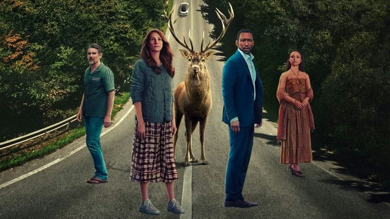 A family's getaway to a luxurious rental home takes an ominous turn when a cyberattack knocks out their devices, and two strangers appear at their door.